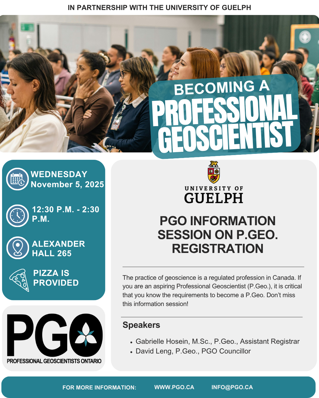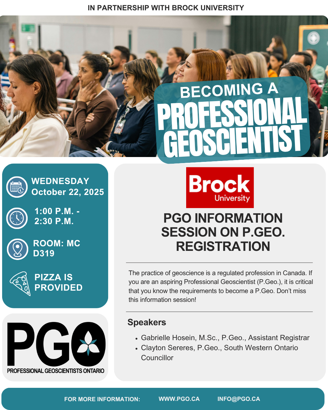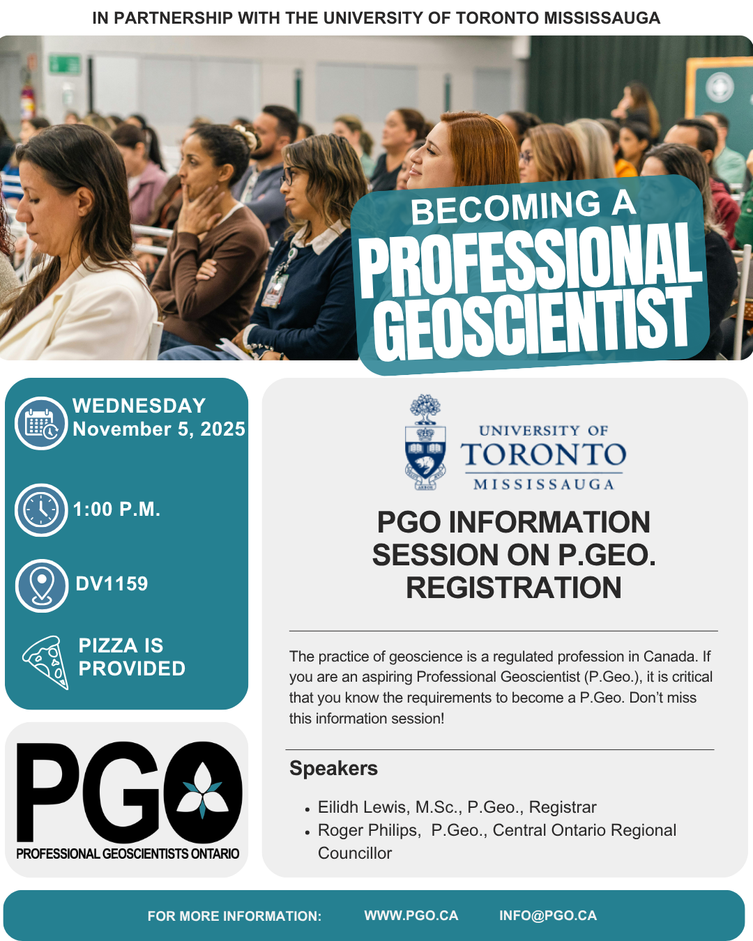 PGO deeply appreciates the dedication of our Councillors who generously volunteer their time to deliver these informative sessions, working closely with Registration staff, Eilidh Lewis, P.Geo., Registrar, and Gabrielle Hosein, P.Geo., Assistant Registrar. We also extend our sincere gratitude to the faculty and staff at Ontario universities for their invaluable partnership in making these outreach initiatives possible.