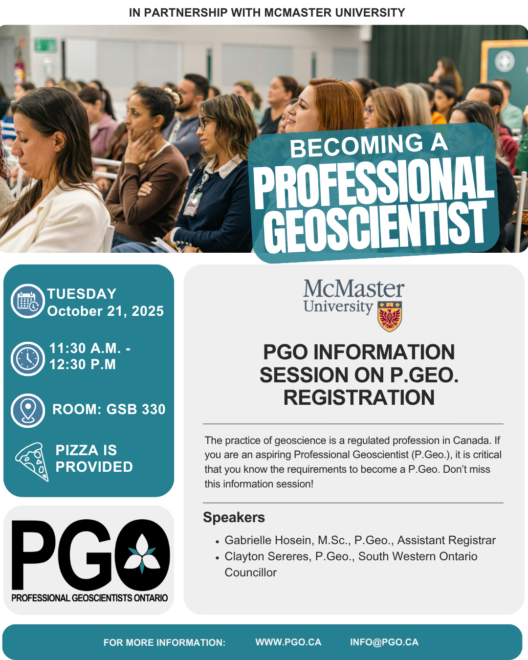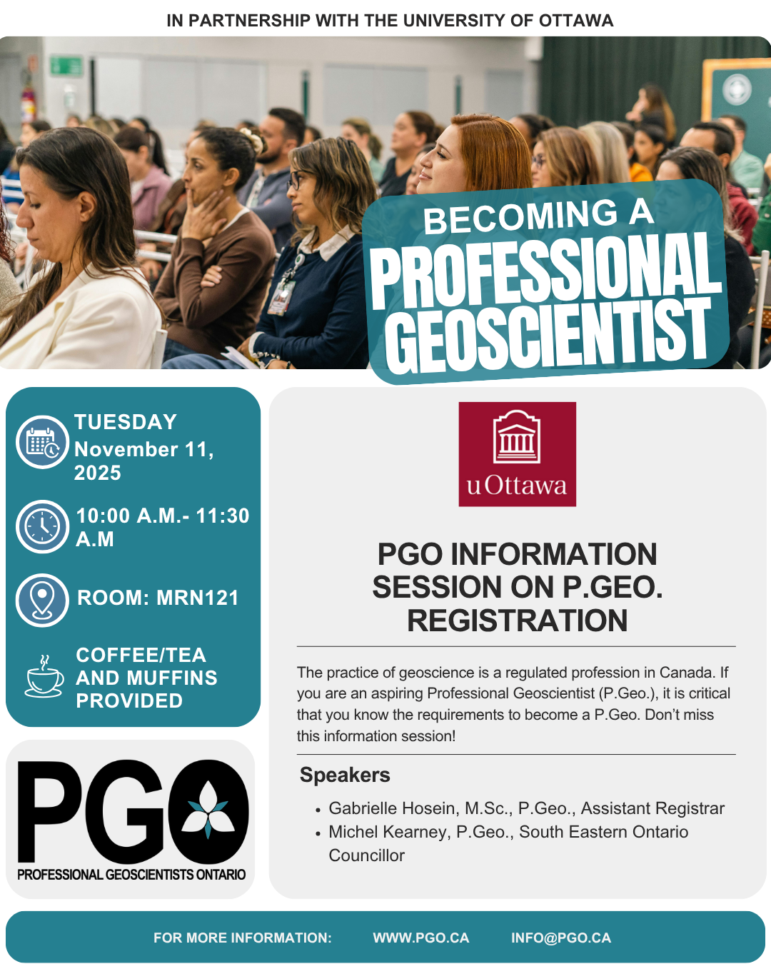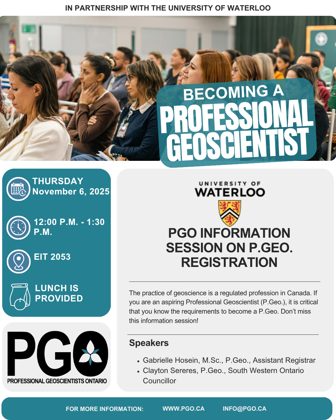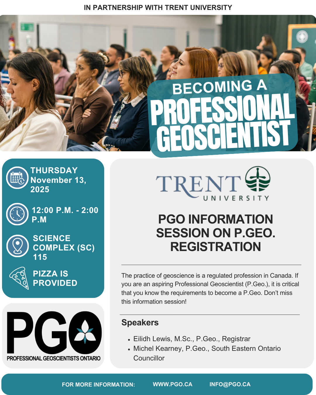 PGO deeply appreciates the dedication of our Councillors who generously volunteer their time to deliver these informative sessions, working closely with Registration staff, Eilidh Lewis, P.Geo., Registrar, and Gabrielle Hosein, P.Geo., Assistant Registrar. We also extend our sincere gratitude to the faculty and staff at Ontario universities for their invaluable partnership in making these outreach initiatives possible.